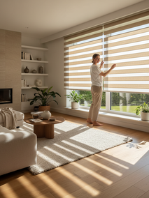 Рулонные шторы — это, пожалуй, самый универсальный инструмент. Вы можете выбрать ткани разной плотности: от легких полупрозрачных, которые мягко рассеивают дневной свет, до плотных, обеспечивающих практически полное затемнение. Это идеальный вариант, когда нужно быстро изменить степень освещенности. Днем, при ярком солнце, вы можете опустить их полностью или частично, защищаясь от жары и бликов. Вечером, когда солнце уже не так активно, можно поднять шторы, наслаждаясь видом из окна. Особого внимания заслуживают рулонные шторы "Зебра" (День-Ночь). Их конструкция с чередующимися полосами прозрачной и плотной ткани позволяет одним движением изменять степень затемнения, не поднимая шторы полностью. Это как диммер для вашего окна! Полный ассортимент рулонных штор ждет вас.