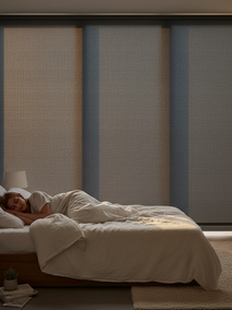 Если вам нужно не полное затемнение, а возможность регулировать интенсивность света, то рулонные шторы "Зебра" (день-ночь) станут отличным выбором. Их уникальная двухслойная конструкция с чередующимися полосами позволяет тонко настраивать освещение: от максимального пропускания света до частичного затемнения. Это идеальный вариант для тех, кто хочет мягко проснуться, постепенно увеличивая количество света в комнате.
