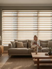 Если вам нужен максимальный контроль над светом, но при этом хочется сохранить возможность видеть улицу, рулонные шторы «Зебра» – это то, что нужно. Их уникальная двухслойная конструкция из чередующихся полос плотной и прозрачной ткани позволяет очень точно регулировать поток света. Вы можете легко изменить степень затемнения, смещая полосы и создавая комфортное рассеянное освещение, при этом отсекая нежелательные блики. Это решение идеально подходит для тех, кто ищет золотую середину между приватностью и естественным светом.