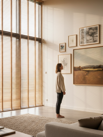 Когда требуется максимально точечное управление углом падения света, без потери обзора, я всегда советую горизонтальные жалюзи. Ламели, вращающиеся на 180 градусов, позволяют «перенаправить» свет так, чтобы он не попадал на чувствительные к бликам поверхности. Вы можете направить свет вверх, вниз или даже частично, сохраняя видимость за окном.