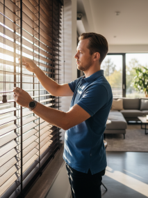 Беспроигрышный вариант для создания уютной атмосферы — горизонтальные деревянные и бамбуковые жалюзи. Натуральные материалы придают интерьеру статусность и теплоту. Специалисты отмечают, что при выборе деревянных моделей крайне важна качественная просушка и обработка ламелей на производстве, чтобы их не «повело» со временем. Важно помнить: жалюзи не обязаны плотно прилегать к стеклу. Небольшой отступ обеспечивает правильную циркуляцию воздуха и предотвращает образование конденсата, что особенно актуально для натуральных материалов.