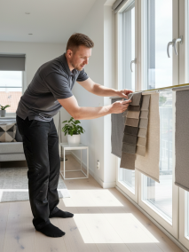 Совет менеджера: Обязательно смотрите образцы вживую. Замерщик всегда привозит с собой полные каталоги материалов. Вы сможете приложить образцы к окну, посмотреть, как они пропускают свет, и оценить, как они сочетаются с цветом стен и мебели в вашем реальном интерьере.