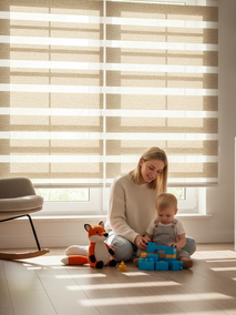 Если вам нужна гибкость в регулировании освещения, то жалюзи Зебра – это отличное решение. Их уникальная конструкция из чередующихся полос прозрачной и плотной ткани позволяет легко менять уровень освещенности в комнате, не лишая её полностью дневного света. Вы можете пропускать мягкий рассеянный свет, который не вредит предметам, или полностью закрыть окно от ярких лучей. Это идеальный компромисс между защитой и естественным освещением в комнате, где ребенок может спокойно играть, не боясь ослепительного солнца. Большой выбор тканей и фактур делает жалюзи Зебра очень востребованными.