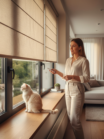 Жалюзи Плиссе — это элегантное и функциональное решение. Благодаря возможности двигать полотно как снизу вверх, так и сверху вниз, вы можете поднять нижнюю часть жалюзи из зоны досягаемости питомца, сохраняя при этом приватность и защиту от солнца в верхней части окна. Это отличный компромисс для тех, кто хочет контролировать свет и избежать повреждений.