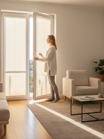 Для окон и дверей с нестандартными формами или для тех, кто ценит максимальную интеграцию, настоящей находкой станут шторы плиссе. Часто клиенты выбирают их для балконных дверей из-за возможности крепления непосредственно на раму, благодаря чему штора движется вместе со створкой. Особенно ценна их конструкция для откидных створок: плиссе надежно фиксируются сверху и снизу, не провисая при любом положении двери. Это гарантирует, что светозащита всегда будет на месте и не помешает проходу. Точность сборки и надежность механизмов позволяют нашим шторам плиссе служить долго, не требуя особого внимания.