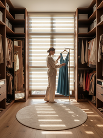 Ключ к успеху – системы, способные регулировать интенсивность и направление света. Нам не нужно полное затемнение, но необходим надежный барьер для УФ-лучей, который при этом не погружает гардеробную в мрак.