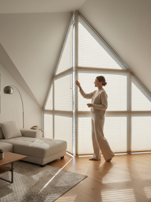 На моем опыте, именно плиссе позволяют максимально точно повторить контуры проема, сохраняя при этом функциональность. Вы можете поднимать и опускать их, фиксируя полотно в любом положении, даже на наклонных окнах. А плотность ткани выбирается исходя из ваших потребностей: от легкой рассеивающей до полной светонепроницаемости (блэкаут).