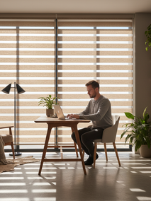 Рулонные шторы Зебра, или как их еще называют «День-Ночь», – это уникальное изобретение, которое позволяет очень гибко управлять светом в течение дня. По сути, это двойное полотно с чередующимися прозрачными и плотными полосами. Сдвигая полосы относительно друг друга, вы можете добиться эффекта рассеянного света, легкого затемнения или, наоборот, открыть максимально широкий обзор. Это позволяет моментально адаптировать освещение под текущие задачи и положение солнца, что значительно снижает нагрузку на глаза.