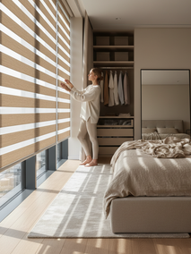 \nНужна приватность с тонкой регулировкой освещения? Выбирайте Рулонные шторы \"Зебра\" (День-Ночь). Их двухслойная конструкция позволяет легко менять степень затемнения, не поднимая штору. Это дает полный контроль над светом и сохраняет уединение.