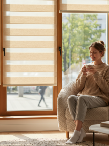 Римские шторы сочетают в себе уют тканевых портьер и функциональность подъемных систем. При подъеме они собираются в красивые складки, открывая окно и впуская свет. Опущенные шторы, выполненные из плотной ткани, надежно защищают вашу приватность. Вы можете выбрать ткань, которая будет пропускать мягкий свет или полностью блокировать его. Это отличное решение для тех, кто хочет добавить в интерьер тепла и текстуры, не жертвуя при этом контролем света.