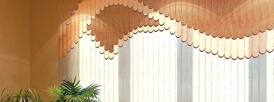 Такие жалюзи подчеркнут дизайн интерьера, защищая при этом от солнечного света. Установка мультифактурных вертикальных жалюзи на больших окнах позволит акцентировать внимание на деталях. Если на окнах малого размера рисунок смотрится неуклюже, то на больших оконных проемах отчетливо видны округлые формы.
